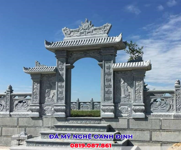 Đá Mỹ Nghệ Truyền Thống Oanh Định nhận thiết kế thi công các mẫu cổng đá trong kiến trúc tâm linh như cổng khu Lăng mộ đá, cổng tam quan đá, cổng tư giá đá, cổng đá nhà thờ họ, đình, chùa ! … Chất liệu làm từ đá xanh khối vững chắc.