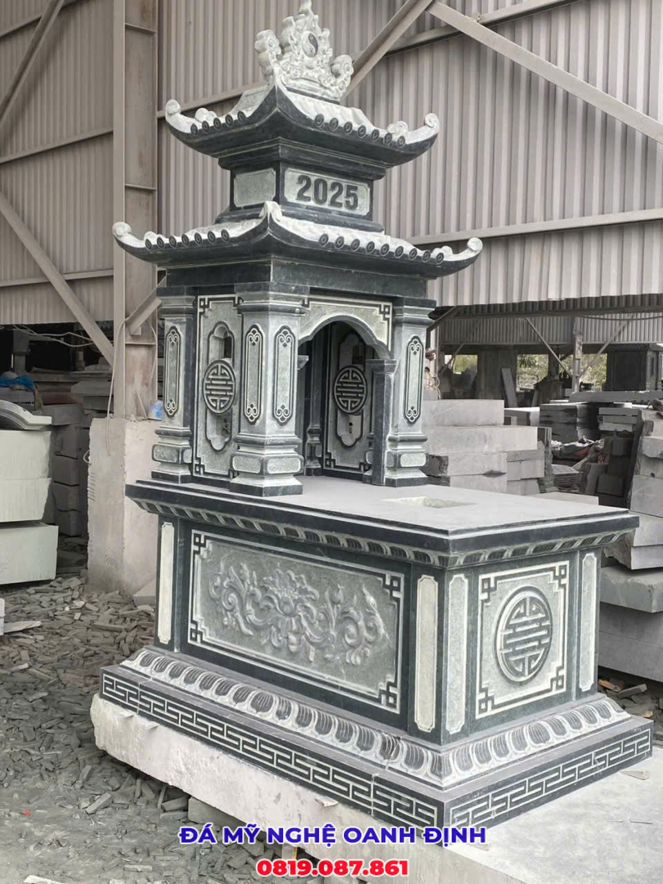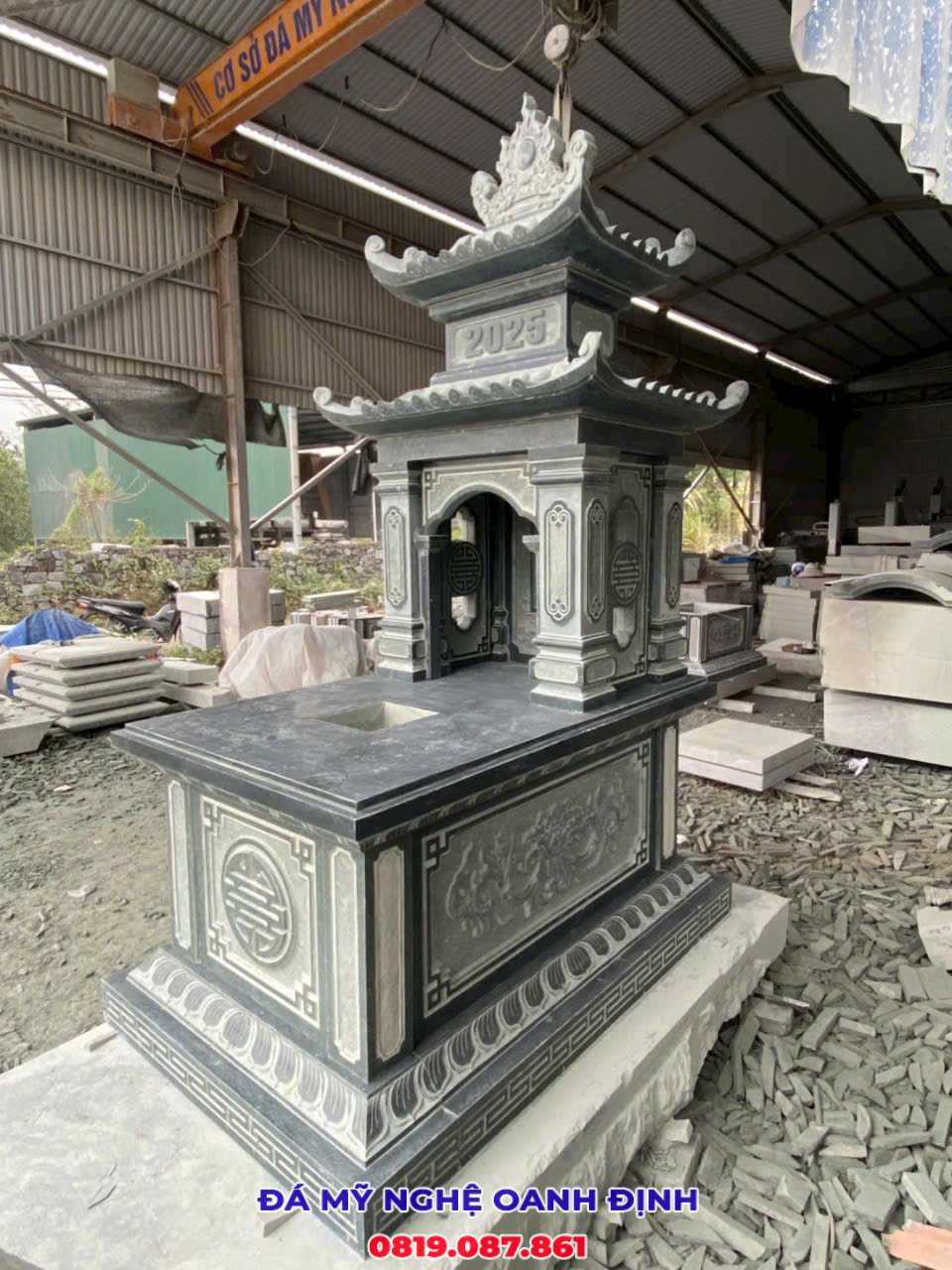 Mộ đá có mái là loại mộ thấp và có mái nhỏ thường được chế tác tại làng nghề đá Ninh Bình. Một số kiểu mộ đá có mái che đẹp được nhiều khách hàng biết đến như mộ đá một mái, mộ đá hai mái, ba mái. Để có thể phân biệt được mộ đá chủ yếu dựa vào lớp mái đá. Thường chất liệu được sử dụng để làm mái chủ yếu là đá xanh hay đá hoa cương, ngoài ra còn có một số những loại đá khác được nghệ nhân sử dụng để điêu khắc lăng mộ đá.
